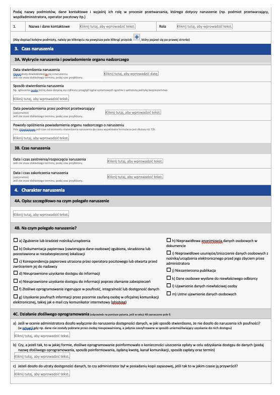 Zgłoszenie naruszenia danych osobowych - formularz